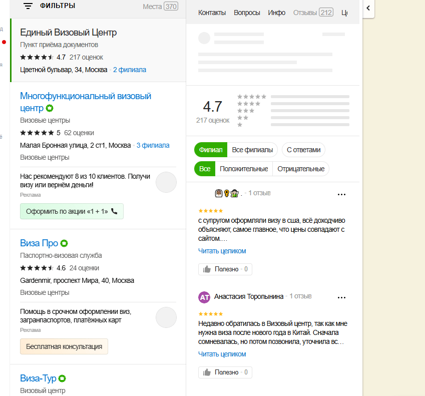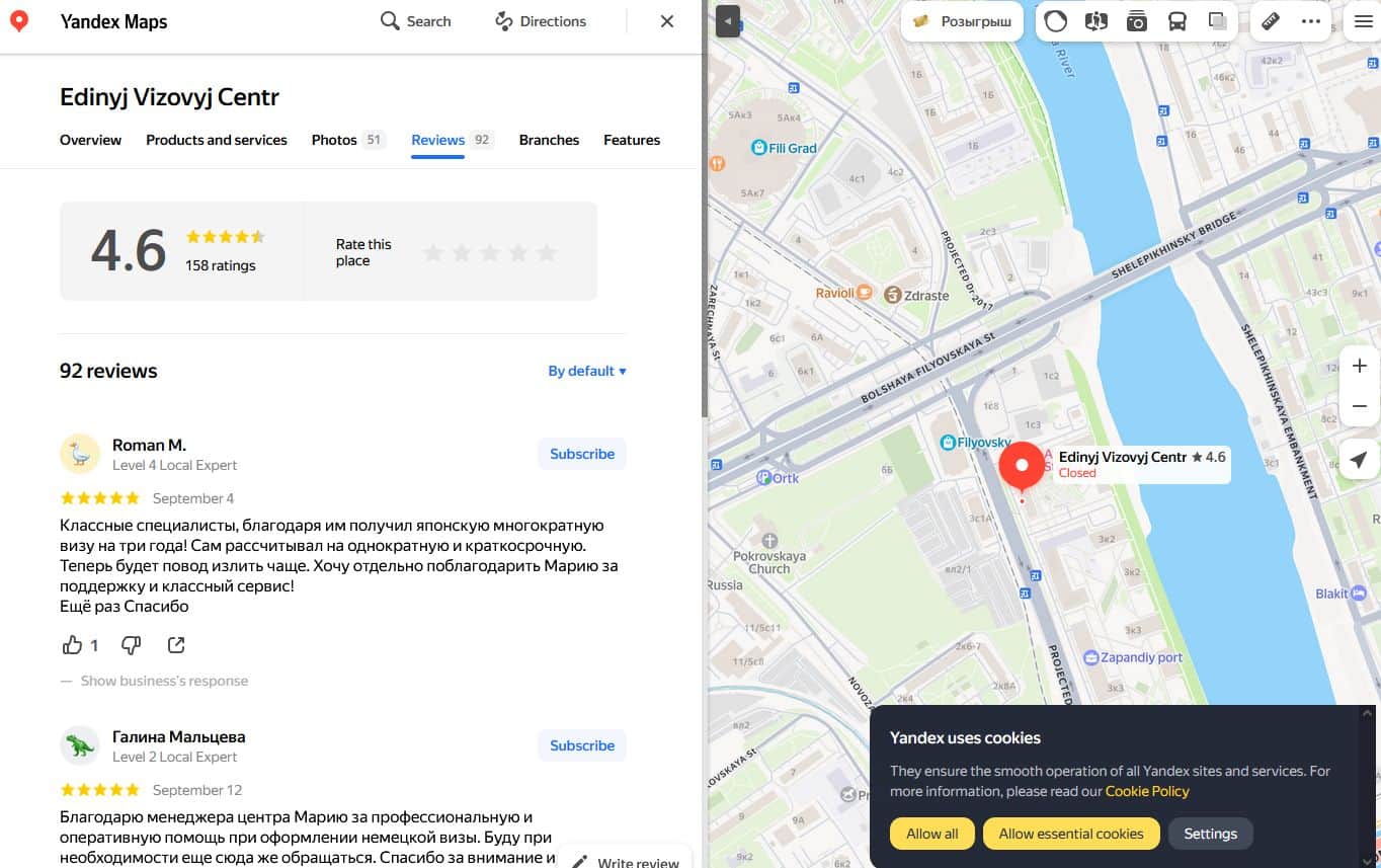 На Яндексе комментарии пользователей преимущественно положительные, отмечают профессионализм менеджеров и быструю подготовку документов для получения виз.