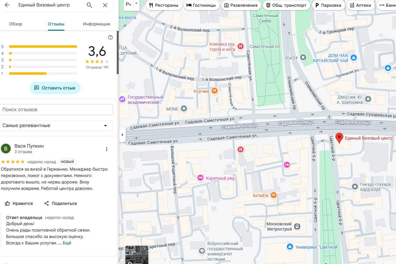На Google maps большая часть мнений о фирме положительные, пользователи довольны сервисом и качеством услуг, отмечают быструю подготовку документов для получения визы в Китай.