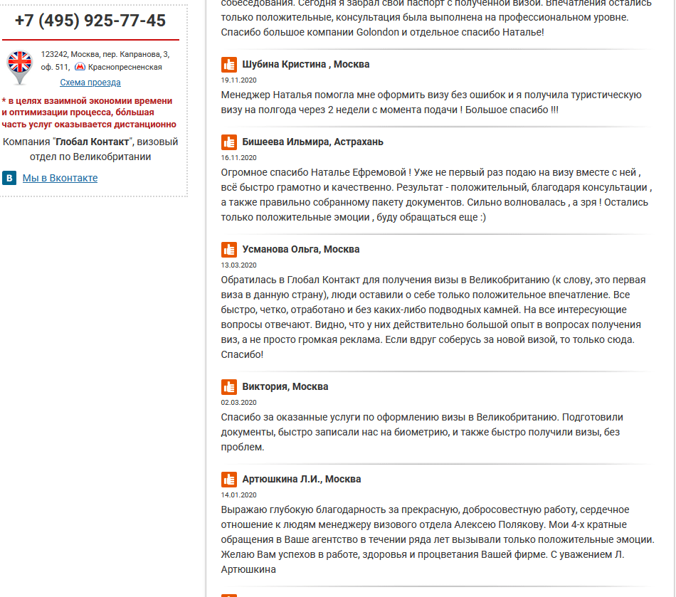 Отзывы о компании Go London преимущественно размещены на самом сайте golondon.ru в разделах про визы в Великобританию и США (более 200 комментариев). На других платформах вроде форумов или отзовиков упоминаний о фирме практически нет, но обсуждения встречаются в контексте визовых услуг.