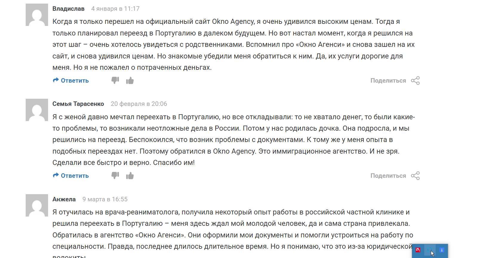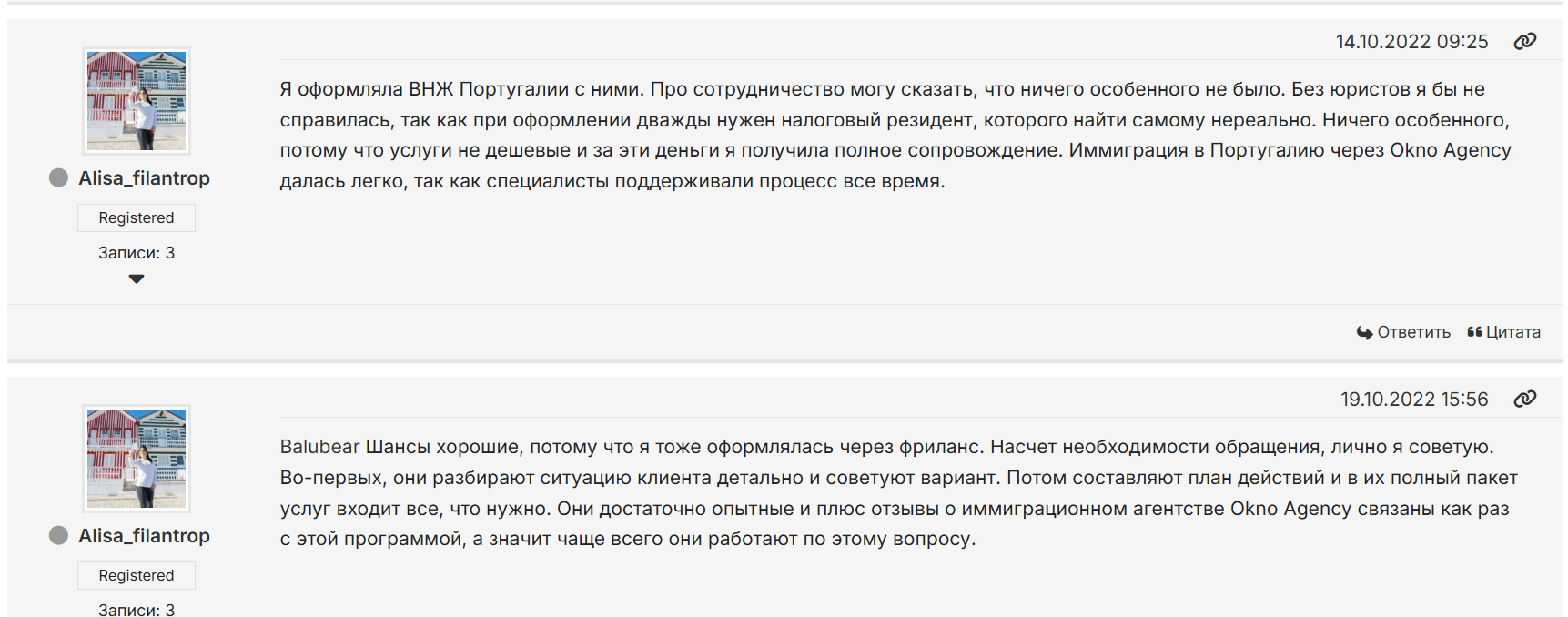 Во-вторых, отзывы о компании Okno Agency нередко затрагивают тему сроков. Здесь важно разделять два понятия: время работы юристов агентства и время реакции португальских госорганов. В ветках обсуждений опытные релоканты часто объясняют новичкам: задержки со стороны Агентства по интеграции, миграции и убежищу (AIMA) — это реальность Португалии, на которую повлиять нельзя. Однако клиенты ожидают, что их будут информировать о таких простоях проактивно, чего, судя по некоторым откликам, иногда не хватает.